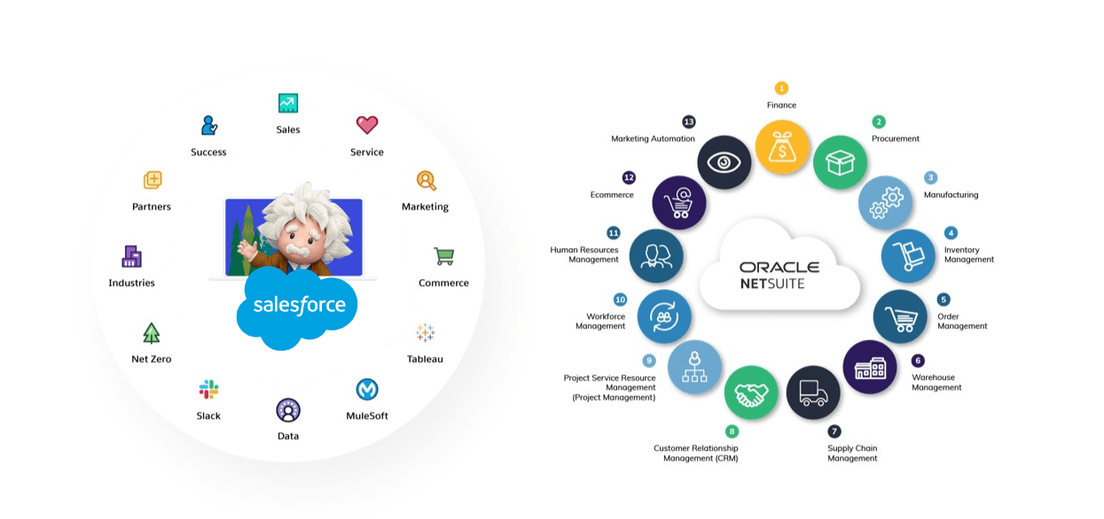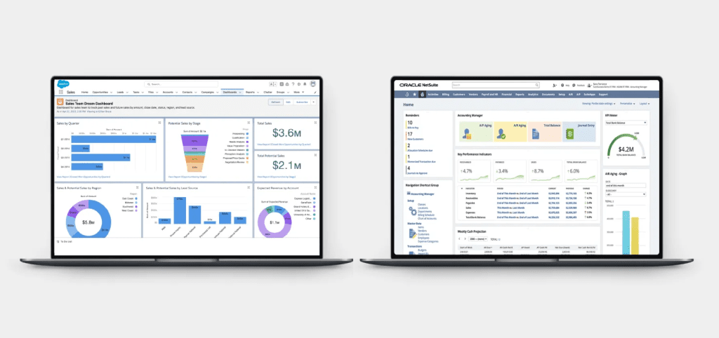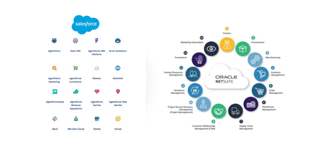 NetSuite y Salesforce pueden trabajar juntos o conectarse con otros sistemas clave de tu empresa para lograr una operación fluida y centralizada.