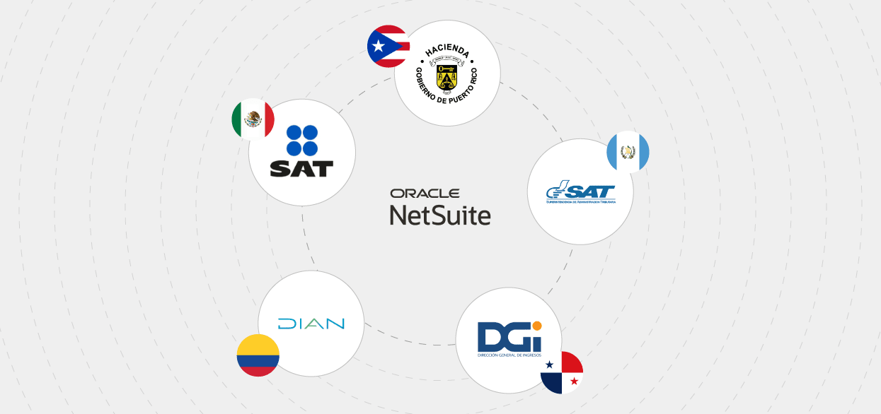 NetSuite adaptado a cada país. Contamos con localizaciones desarrolladas para México, Colombia, Guatemala, Puerto Rico y Panamá que cumplen con los requisitos fiscales, formatos de facturación, moneda local y reportes específicos. Todo listo para operar conforme a la normativa de cada país.